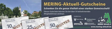 bei der Raiffeisenbank Wittelsbacher Land eG in der Meringer Geschäftsstelle, der Stadtsparkasse Augsburg in der Filiale in Mering, bei der Spengler GmbH und bei der Marktgemeinde Mering.